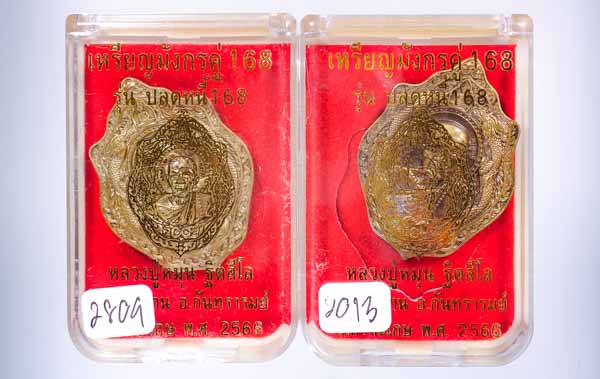 | ชื่อพระเครื่อง | *ทีเดียว 2 องค์ ทองทิพย์รมซาติน เข้มขลังมาก เหรียญมังกรคู่168 รุ่นปลดหนี้168 หลวงปู่หมุน ฐิตสีโล ออกวัดบ้านจาน ปี66 เคาะเดียวแดง* |