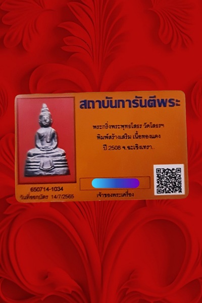 พระกริ่งหลวงพ่อโสธร ปี2508 เนื้อทองแดงรมดำ วัดโสธรวราราม จ.ฉะเชิงเทรา + มาพร้อมบัตรรับรองGpra