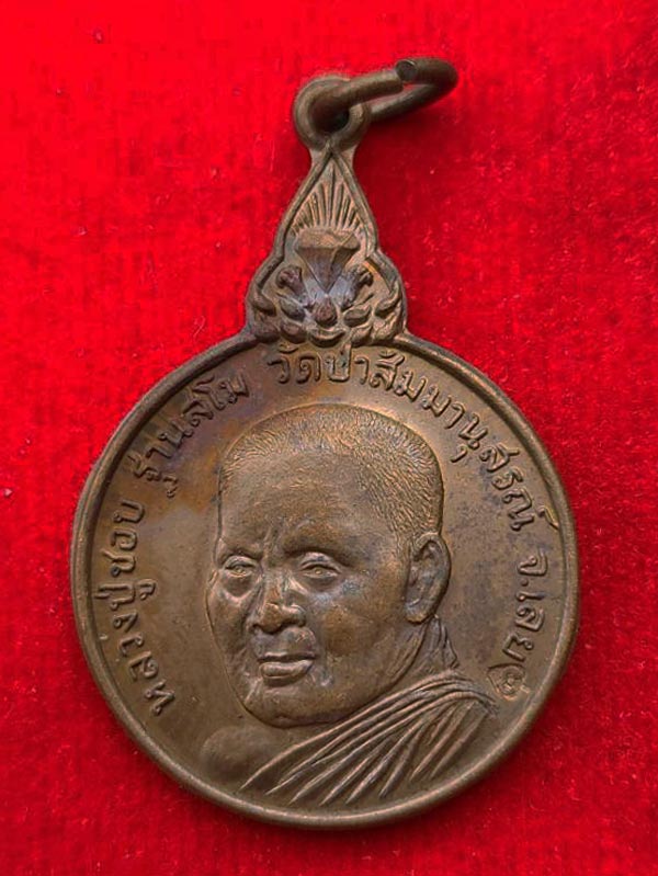 เหรียญหลวงปู่ชอบ ฐานสโม วัดป่าสัมมานุสรณ์ จังหวัดเลย รุ่น เมตตา77 ปี 2520 เนื้อทองแดง เก่าเก็บ ไม่ผ่านการใช้ ผิวเดิม |