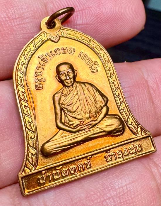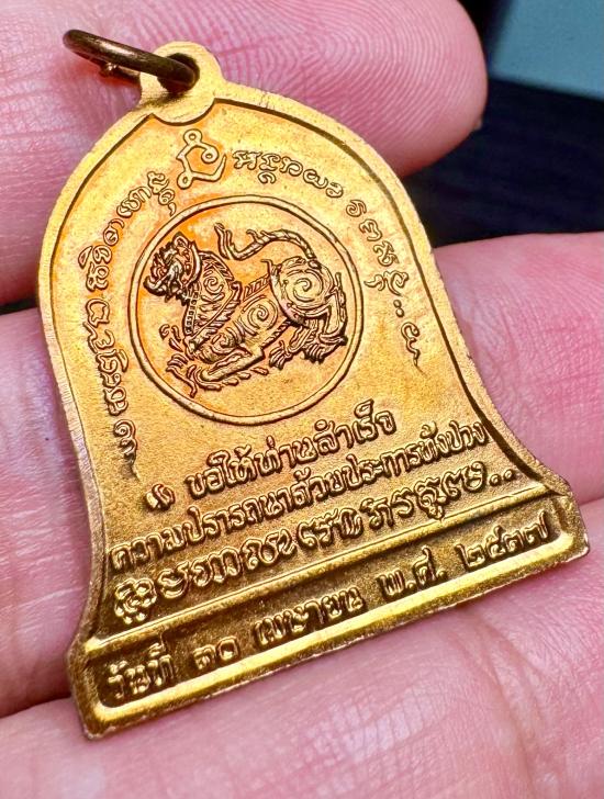 เหรียญระฆังหลังสิงห์ รุ่นบำบัดทุกข์ บำรุงสุข หลวงพ่อเกษม เขมโก เมตตาปลุกเสก ที่สุสานไตรลักษณ์ จ. ลำปาง ปี2537 เนื้อทองแดงผิวไฟ |