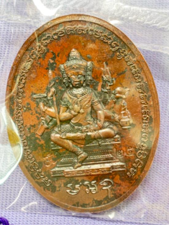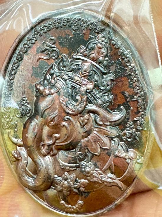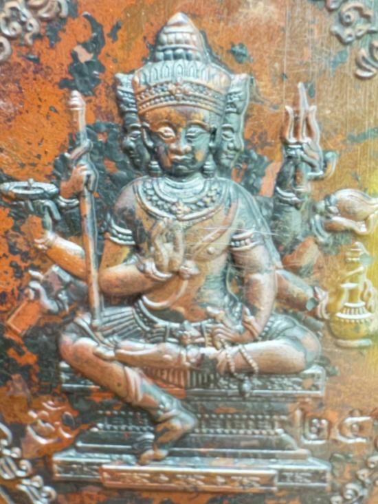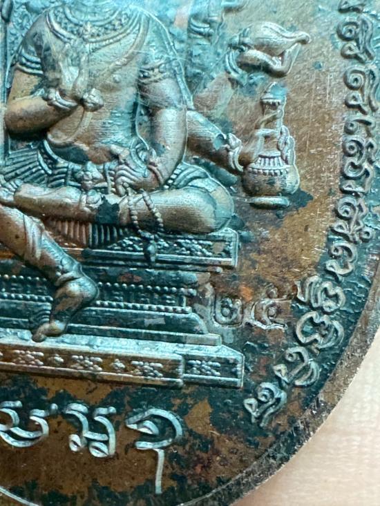 เหรียญพระพิฆเนศ หลังพระพรหม หลวงปู่อิ่ม วัดทุ่งนาใหม่ จ.นครศรีธรรมราช รุ่นอิ่มทรัพย์ เนื้อทองโบราณ ตอกโค๊ตโอม ตอกหมายเลข 25 |