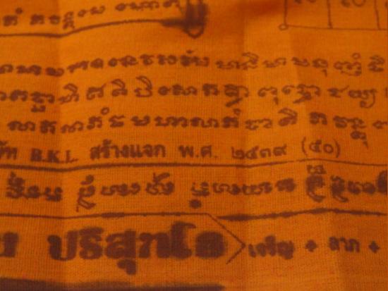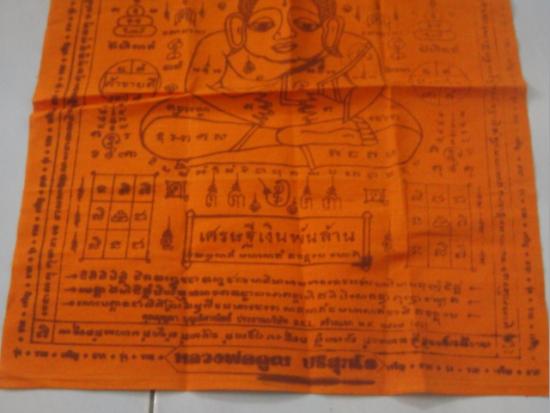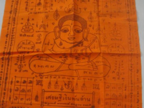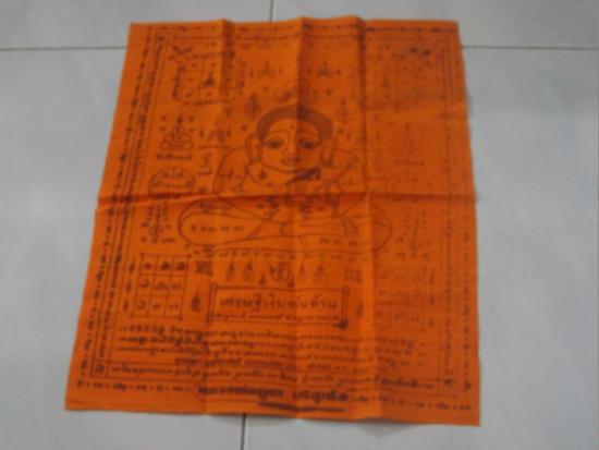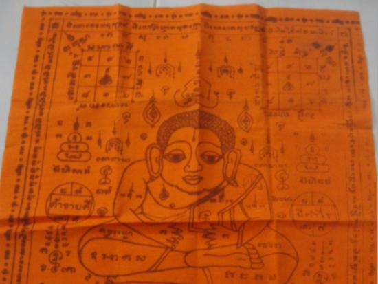 วัดใจเคาะเดียว......100.......ผ้ายันต์พระสังข์กัจจายน์ลพ.คูณวัดบ้านไร่ คุณบุญมา บุญเลิศวณิชย์ ประธานบริษัท B.K.L. สร้างแจก ปี 2539 ขนาด 12x15 นิ้ว |