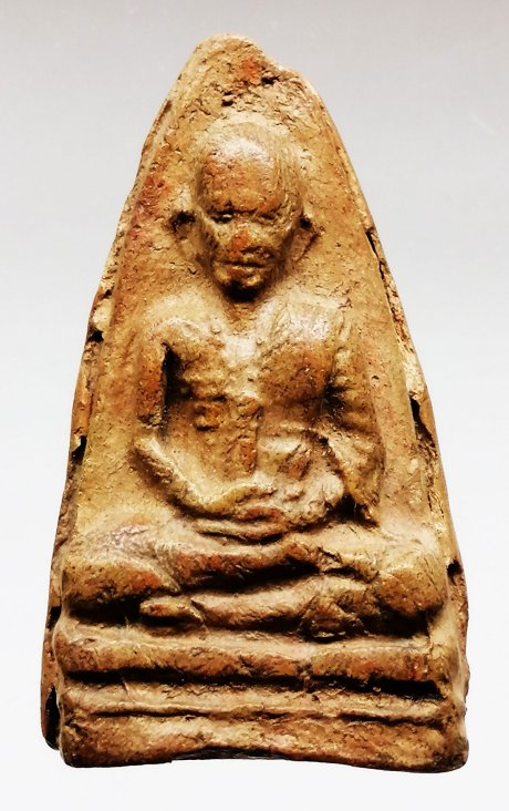 << วัดใจ >> พระผงรูปเหมือนครูบาศรีวิชัย หลังย่น ยุคแรก เนื้อดินผสมเถ้าอัฐิ เนื้อสีพิกุล เนื้อหาจัด สภาพสวยหน้าตาติด บิ่นปลายยอด(ตามรูป) |