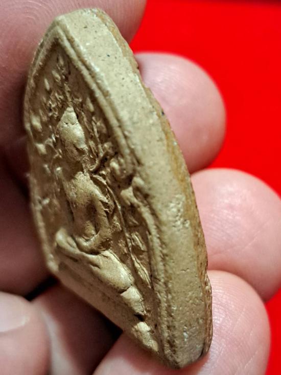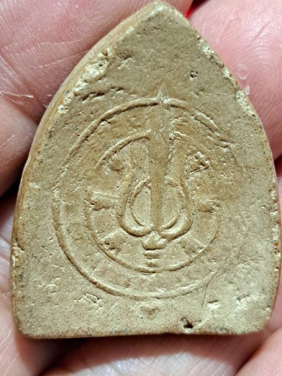พระเนื้อดินพิมพ์ยอดขุนพลปรกโพธิ์ หลวงพ่อเต๋ วัดสามง่าม จ. นค รปฐม พ.ศ.2507 ด้านหลังยันต์สามง่าม |