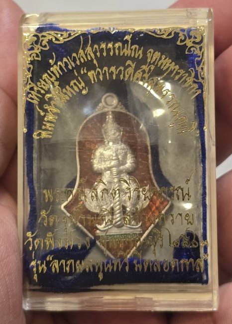 เหรียญท้าวเวสสุวรรณ พิมพ์จำปีใหญ่ เนื้อเงินลงยาแดง รุ่น ทวารวดีศรีสุพรรณภูมิ หลวงพ่ออิฏฐ์ วัดจุฬามณี สร้างถวาย วัดพังม่วง ปี 2563 |