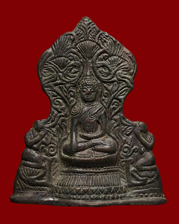 พระพุทธเนื้อทองผสม หลังเจดีย์ ไม่ทราบที่ครับ ขนาดฐาน9.5ซม.สูง11.3ซม.