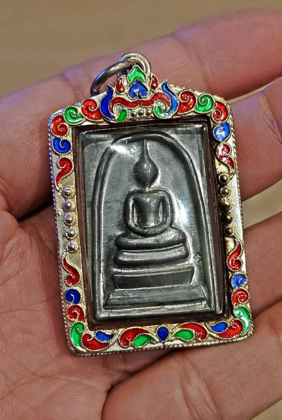 พระสมเด็จเนื้อตะกั่ว หลวงพ่ออิฏฐ์ วัดจุฬามณี เลี่ยมเงินลงยา