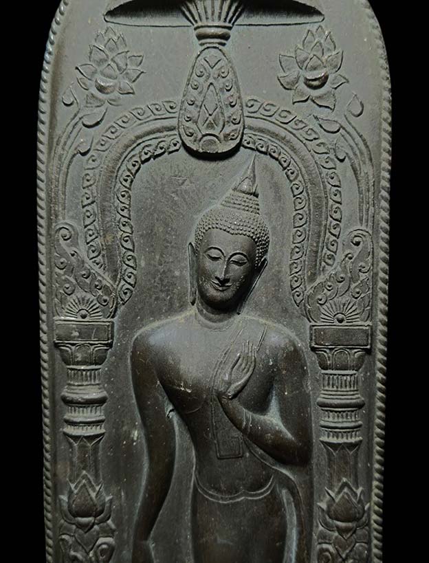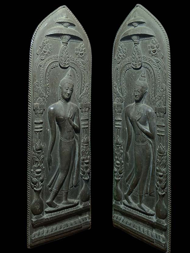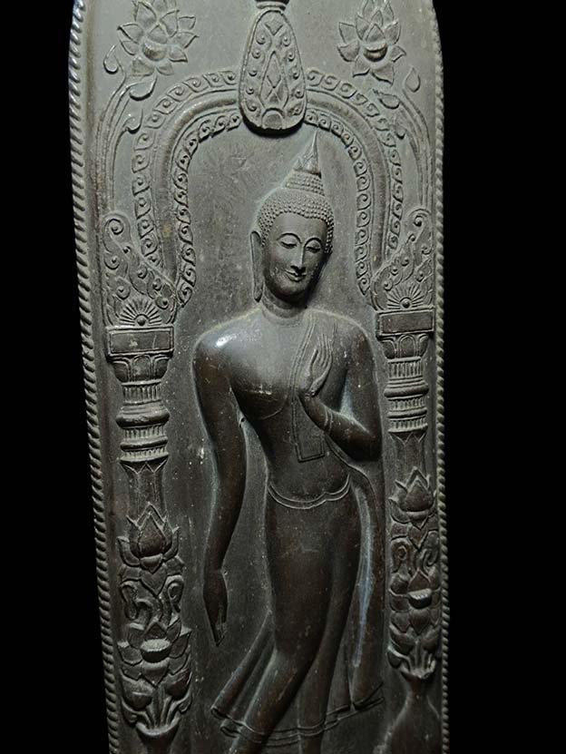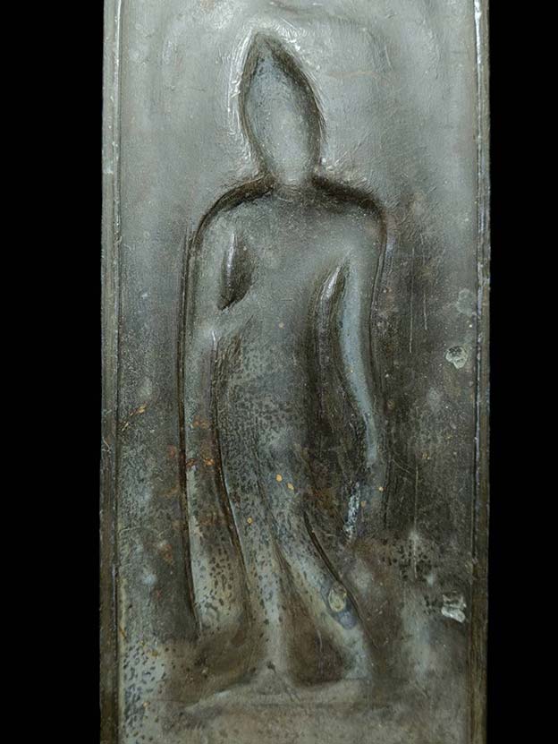พระลีลากำแพงศอก หลังแบบ เนื้อโลหะตะกั่วเก่า ผิวเดิมๆ ไม่ทราบที่ วัดขนาดที่ฐาน 11 ซม. x สูง 32 ซม. สวยสมบูรณ์ ผิวแห้งหิ้ง |