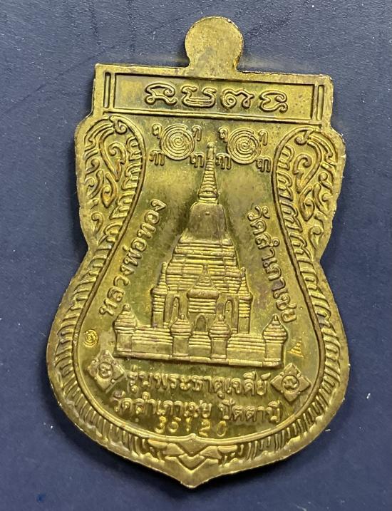 เหรียญพุทธซ้อน หลวงพ่อทวด อาจารย์ทอง วัดสำเภาเชย รุ่นพระธาตุเจดีย์ เนื้อทองฝาบาตร ปี 2549 |