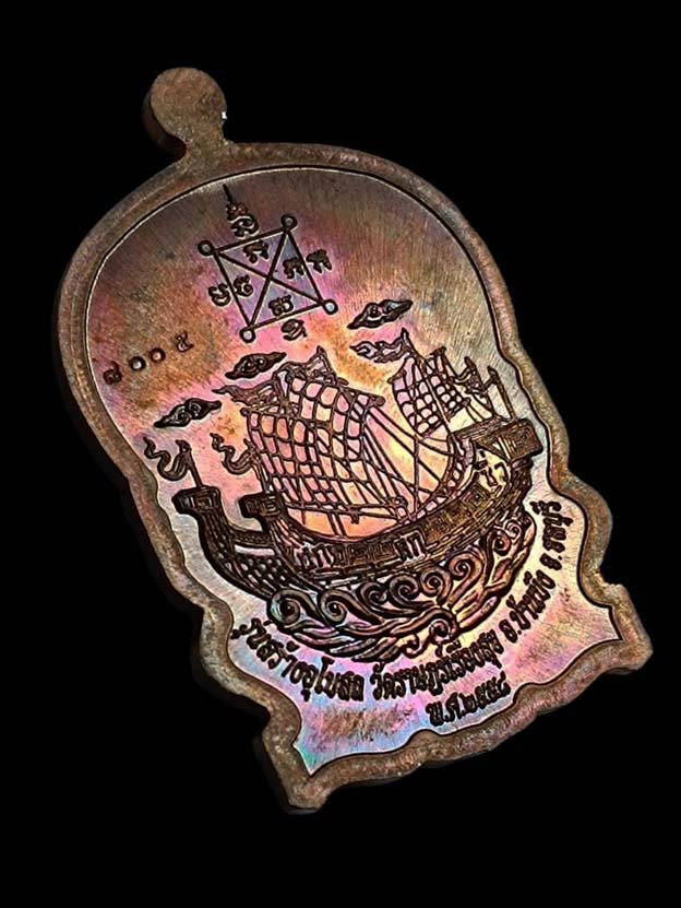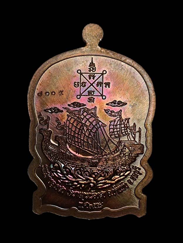 เหรียญนั่งพาน สำเภาทอง ไตรมาส 58 ทองแดงมันปู หลวงปู่ฮก วัดราษฎร์เรืองสุข จ.ชลบุรี หมายเลข 8005 กล่องเดิม |