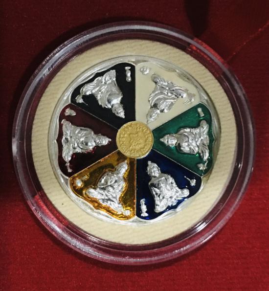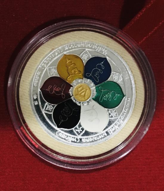 เหรียญหลักฮะฮุก พระพุทธเจ้า 6 พระองค์ รุ่น 1 วัดมังกรกมลาวาส (เล่งเน่ยยี่) ปี 2554 เนื้อเงินลงยา |