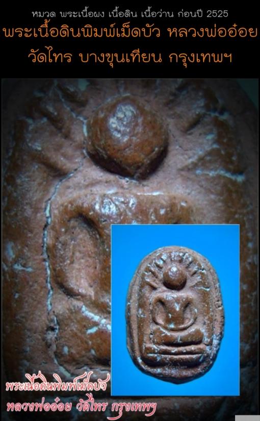 พระเนื้อดิน พิมพ์เม็ดบัว หลวงพ่ออ๋อย วัดไทร บางขุนเทียน กทม ### |