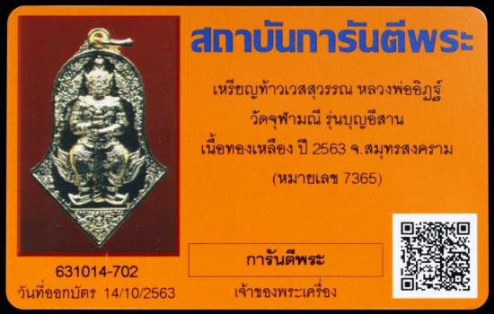 วัดใจ เคาะเดียว เหรียญท้าวเวสสุวรรณ หลวงพ่ออิฏฐ์ วัดจุฬามณี พิมพ์จำปีใหญ่ รุ่นบุญอีสาน เนื้อทองเหลือง ปี 2563 จ.สมุทรสงคราม กล่องเดิม พร้อมบัตรรับรองการันตีพระ |