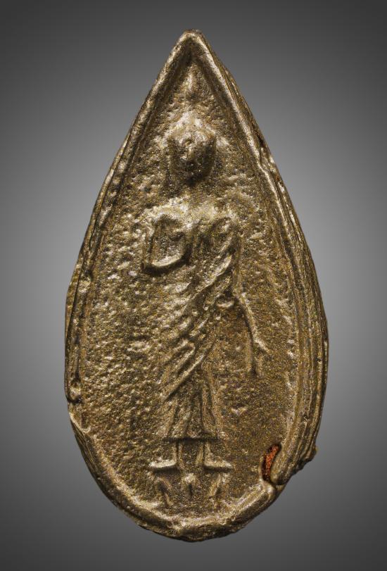 เหรียญหล่อคันธราช พิมพ์หยดน้ำ ปี2500หลวงพ่อน้อย วัดธรรมศาลา จ.นครปฐม |