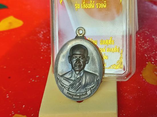 เหรียญ รุ่น เลื่อนได้ รวยดี พระอาจารย์ต้อม วัดท่าสะแบง จังหวัดร้อยเอ็ด เนื้อนวะโลหะห่วงเชื่อมเงินเลขสวย