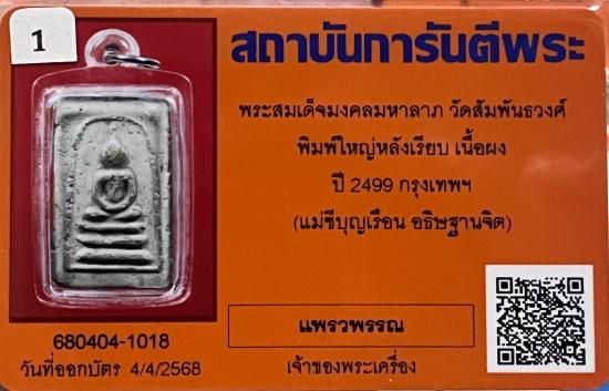 พระมงคลมหาลาภพระสมเด็จพิมพ์ใหญ่เนื้อผงปี2499.คุณแม่บุญเรือน |
