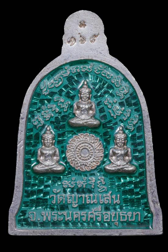เหรียญเงินระฆังลงยาสีเขียวหลวงปู่ชื้นวัดญาณเสนจ.อยุธยา วัดใจเคาะแรกแดง