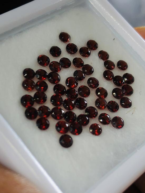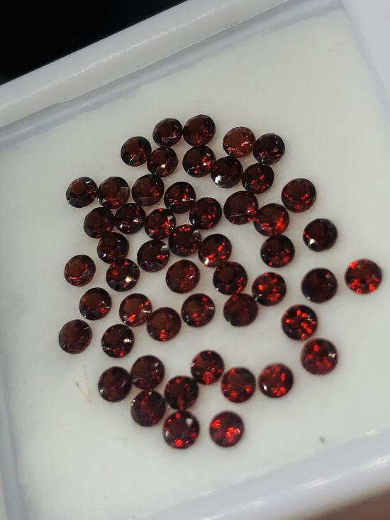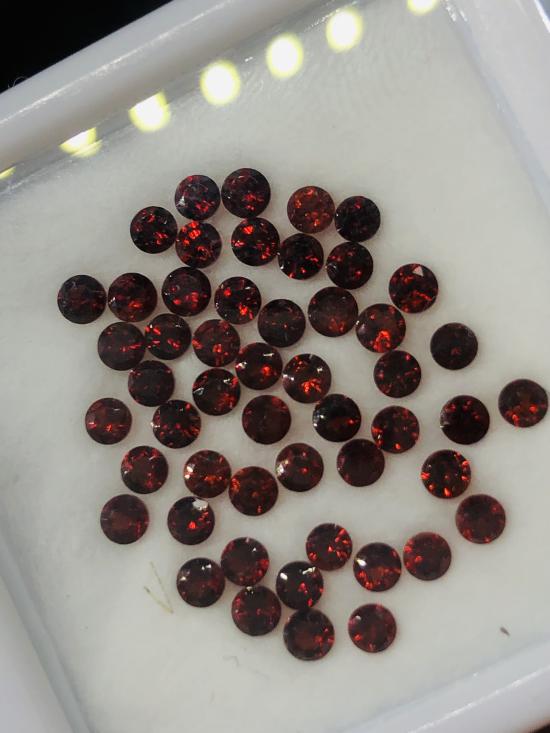 โกเมนแดง (สยาม บ่อไร่) พลอยเก่าเก็บ ขนาดประมาณ 2.5 มิล 50 เม็ด น้ำหนักรวม 4.8 กะรัต |