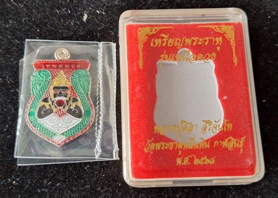 เหรียญพระราหูอมจันทร์ หลวงปู่ศิลา เมตตาอธิษฐานจิต รุ่นเหนือดวง เนื้ออัลปาก้าลงยา No.355 |