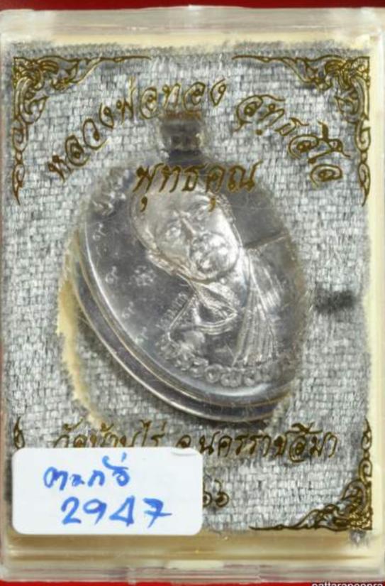 เหรียญหลวงพ่อทอง รุ่นพุทธคุณ เนื้อตะกั่ว ไม่ตัดปีก 9 รอบ หมายเลข 2947 |