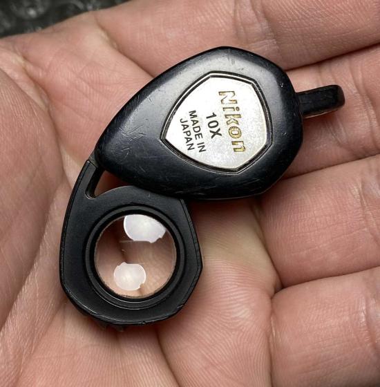 กล้องส่องพระ Nikon (มือสอง) สภาพบอดี้ พอสวยค่ะ บานพับหลวมนิดๆ (ไม่แน่นมาก) แต่ยกค้างหัวไม่ตก เลนส์มีรอยนิดๆ และเหมือนมีคราบช่วงขอบๆเลนส์แต่ไม่มีผลกับการส่องค่ะ ตรงน็อตมีรอยกาวค่ะ (อ่านรายละเอียดตำหนิก่อนนะคะ จะได้ไม่เสียเวลากันค่ะ)