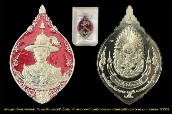 เหรียญสมเด็จพระเจ้าตากสิน "รุ่นชนะศึกปราบไพรี" เนื้ออัลปาก้า ลงยาแดง ด้านหลังดวงตรามหาเดชพร้อมโค๊ต รวย วัดพรานนก จ.อยุธย า ปี 2562