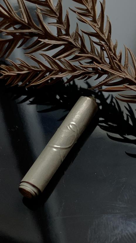 ตะกรุดนิมิตพิสมร จาร ตัวนัง ปี ๒๕๔๕. ยาว ๑นิ้ว พ่อท่านเขียว วัดห้วยเงาะ. |