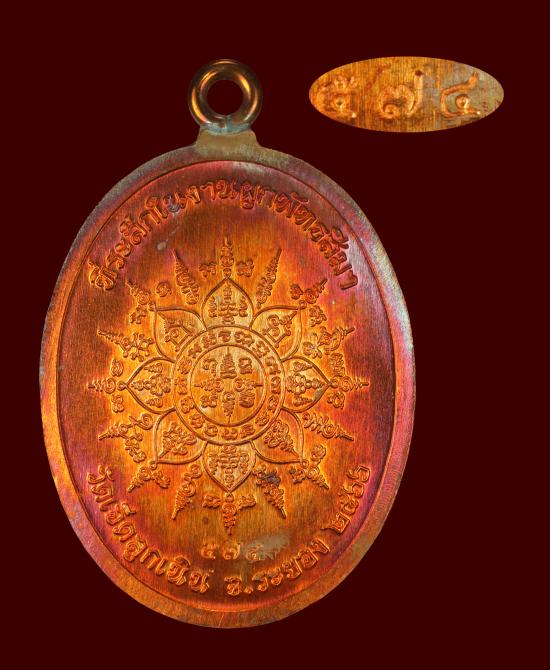 เหรียญห่วงเชื่อม หลวงปู่เปลว วัดเจ็ดลูกเนินระยอง เนื้อทองแดงผิวไฟส้ม พิเศษ**บล๊อกทองคำ*** สร้างน้อย หมายเลข 3 หลัก *574* สร้าง 9299 เหรียญ ปี 2566 (ขนาดความสูง 4 ซม กว้าง 3.7 ซม. ) ไม่มีกล่อง |