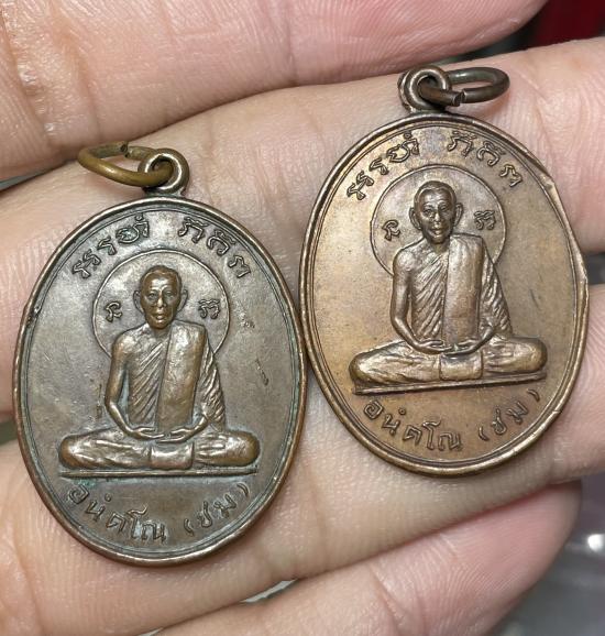 เหรียญหลวงพ่อชม วัดเขานันทา ออกวัดดงขี้เหล็ก เนื้อทองแดง 2 องค์คับ
