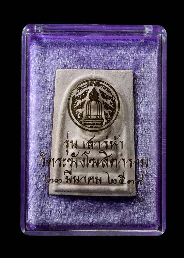 สมเด็จวัดระฆัง รุ่นเสาร์ห้า ปี2539 พิมพ์เกศทะลุซุ้ม สภาพสวยมากๆ มวลสารเยี่ยมเพราะเป็นมวลสารเก่าของวัดระฆัง ปลุกเสกพิธีใหญ่ที่วัดระฆัง เมื่อปี 2539 รุ่นนี้เป็นที่นิยมถือว่าเป็นสมเด็จ เสาร์ห้า รุ่น 2 ต่อจาก สมเด็จวัดระฆัง เสาร์ห้า ปี 2536(หลังจากสมเด็จวัดระฆังรุ่นเสาร์ห้า ปี 36 ออกมาให้ประชาชนเช่าบูชา จนไม่พอต่อความต้องการ และมีผู้นำไปใช้แล้วเกิดพุทธาณุภาพในทางแคล้วคลาด โชคลาภ เป็นศิริมงคล จนหมดไปจากวัดอย่างรวดเร็ว ในปี 39 |