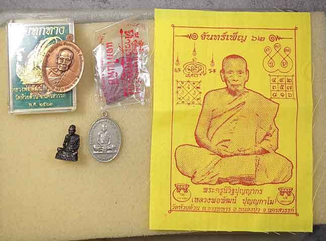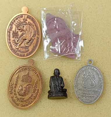 เหรียญ 3 เหรียญ +ผ้ายันต์ หลวงพ่อพัฒน์ วัดห้วยด้วน + เหรียญหลวงพ่อเดิม ปี30 +รูปหล่อหลวงพ่อจ้อย วัดศรีอุทุมพร ปี33 นครสวรรค์ |