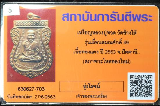 ** วัดใจเคาะเดียวแดง ** เหรียญหลวงปู่ทวด วัดช้างให้ จ. ปัตตานี รุ่นเลื่อนสมณศักดิ์ 49 เนื้อทองแดงกะไหล่ทอง ปี 2553 สวยๆ พร้อมบัตรรับรอง