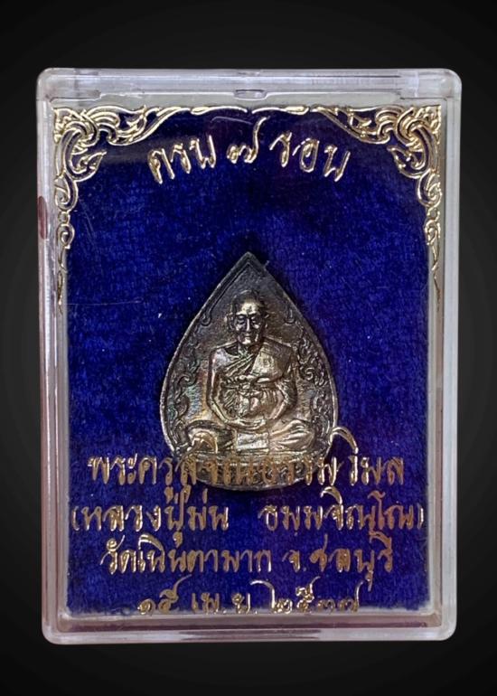 เหรียญหยดน้ำเนื้อเงิน รุ่น ครบ 7 รอบ หลวงปู่ม่น ธัมมจิณโณ วัดเนินตามาก อ.พนัสนิคม จ.ชลบุรี ปี พศ.2537