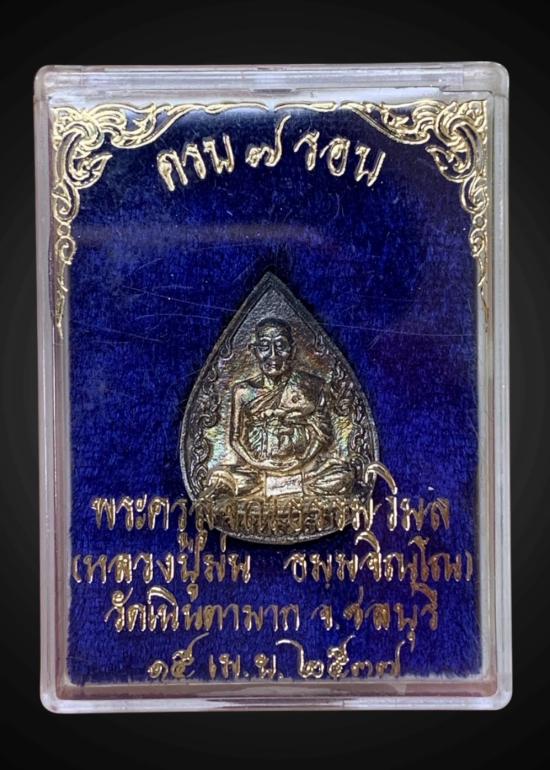 เหรียญหยดน้ำเนื้อเงิน รุ่น ครบ 7 รอบ หลวงปู่ม่น ธัมมจิณโณ วัดเนินตามาก อ.พนัสนิคม จ.ชลบุรี ปี พศ.2537