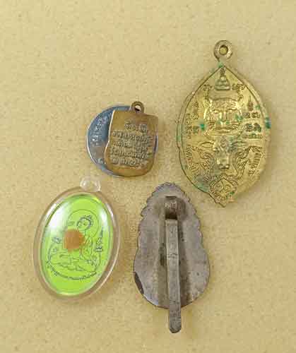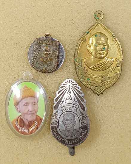 เหรียญเสมาเล็ก หลวงพ่อสุ่น วัดแหลมสิงห์ จันทบุรี + เหรียญหลวงพ่อสมชาย วัดเขาสุกิม +ล็อคเก็ตหลังจีวร หลวงปู่พิศดู วัดเทพธารทอง จันทบุรี + แหนบหลวงพ่อกี๋ (พระครูกัลยาณกิตติ) วัดแหลมมะขาม ตราด |