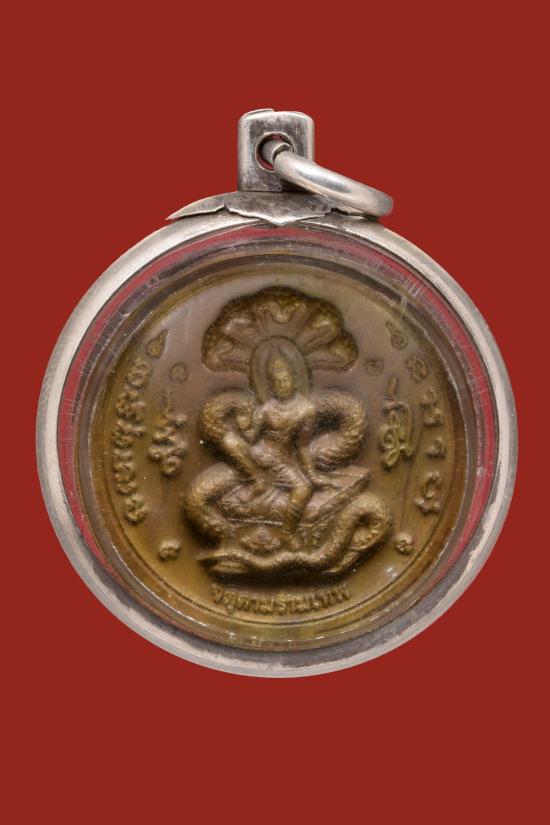 เหรียญจตุคามรามเทพ วัดพุทธไธสวรรค์ ไม่ทราบรุ่น เลี่ยมเงินผ่าหวาย
