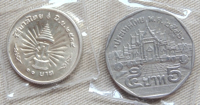 เคาะเดียว..เหรียญที่ระลึกรัชดาภิเษกชนิดราคา 10 บาท.และเหรียญหมุนเวียนชนิดราคา 5 บาท.ปี 2546 อย่างละ 1 เหรียญ |