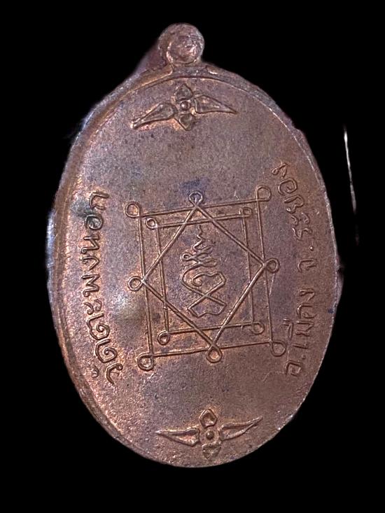 ด้านหลังเป็นยันต์มงคล ล้อมรอบด้วยอักขระและเครื่องหมายคุ้มครอง