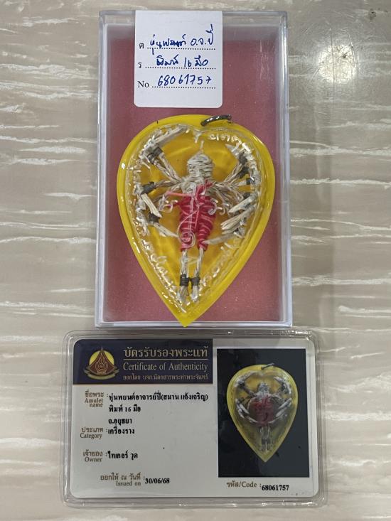 สมาน แจ้งเจริญ ศิษย์เอกผู้สืบทอดวิชาอาจารย์ลอย ฆราวาสหุ่นพยนต์มือหนึ่งของไทย เป็นหุ่นพยนต์สายเทพ เช่าบูชาได้อย่างสบายใจ พิมพ์16มือ สภาพสวย สมบูรณ์ รับประกันพระแท้ พร้อมบัตรรับรองพระแท้จากท่าพระจันทร์ |