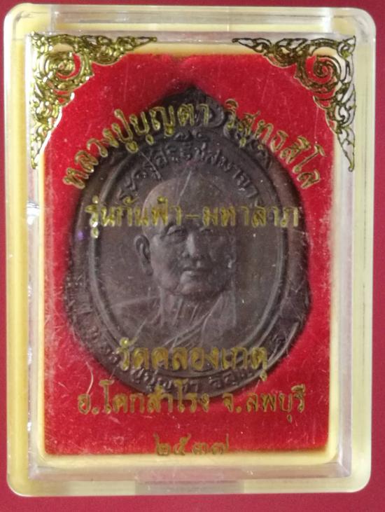 เหรียญกันฟ้า-มหาลาภ พระครูสิริธัชสมาจารย์ (หลวงปู่บุญตา วิสุทธสีโล) วัดคลองเกตุ อ.โคกสำโรง จ.ลพบุรี ปี ๒๕๓๗ พร้อมกล่อง |