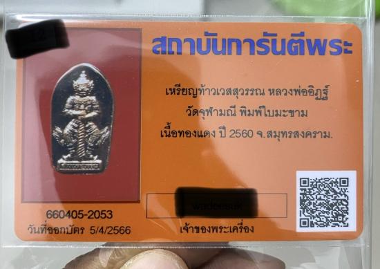 เหรียญท้าวเวสสุวรรณ หลวงพ่ออิฐ วัดจุฬามณี พิมพ์ใบมะข้าม เนื้อทองแดงปี 2560 จ.สมุทรสงคราม |