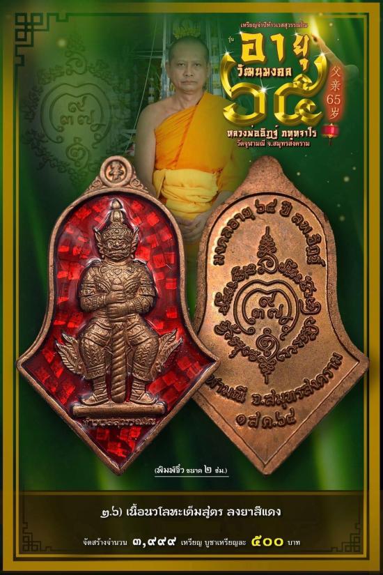 เหรียญจำปีท้าวเวสสุวรรโณ พิมพ์จิ๋ว เนื้อนวะเต็มสูตรลงยาแดง รุ่นอายุ วัฒนมงคล ๖๕ ปี จำนวนการสร้าง ๓,๙๙๙ องค์ |