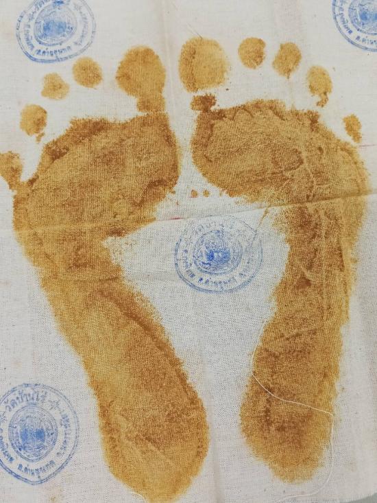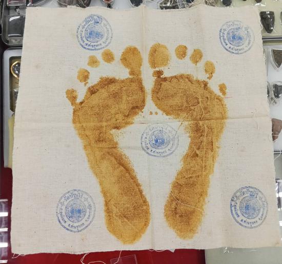 ผ้ารอยเท้า หลวงพ่อคูณ ปั๊มตราวัด ปี2535 ขนาด 11.6 × 11.1นิ้ว