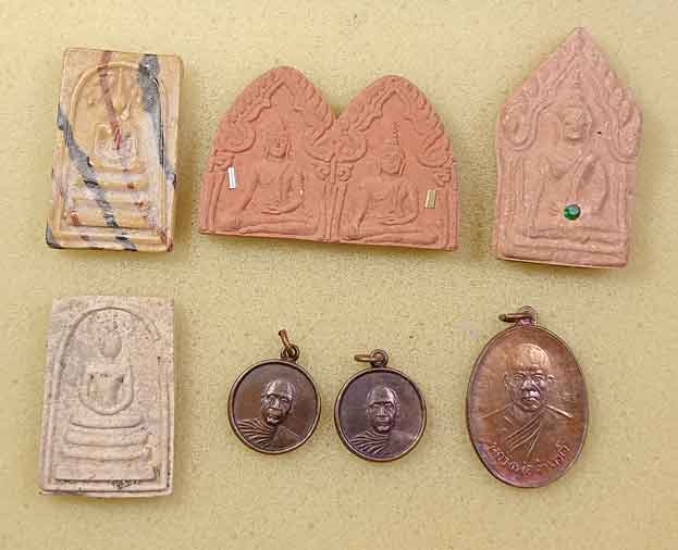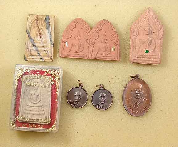 สมเด็จหลวงพ่อขอม วัดไผ่โรงวัว สุพรรณบุรี +ขุนแผน 2 องค์ พระอาจารย์รวย วัดหนองตาสาม สุพรรณบุรี + สมเด็จ วัดถ้ำเสือ ปี 38 +หลวงพ่ออุตตมะ วัดวังก์วิเวการาม กาญจนบุรีปี32 2 เหรียญ +หลวงพ่อนงค์ วัดสว่าง |