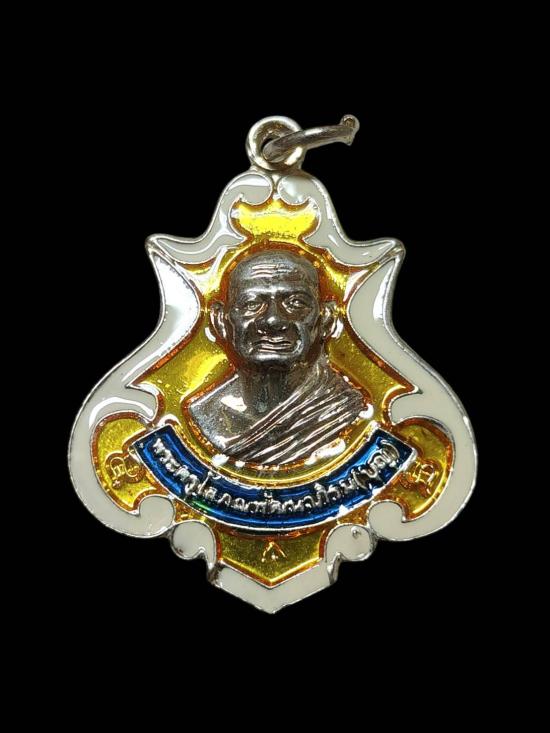A37.เหรียญปาดตาล หลวงปู่บุญวัดทุ่งเหียง ชลบุรี เนื้อกะไหล่เงินลงยา 2 สี เคาะเดียวเเดง |