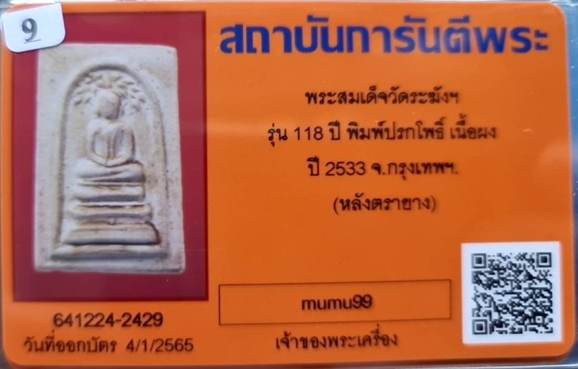 ## สมเด็จวัดระฆัง อนุสรณ์ 118ปี พ.ศ.2533 พิมพ์ปรกโพธิ์ "พระสวยเดิมไม่ผ่านการใช้.หลังปั้มตรายาง...พร้อมบัตรรับรอง.""รับประกันแท้ตลอดฃีพและแท้ตามมาตรฐานสากล....... อนาคตดี ถูกๆเลยครับ.... ราคายังไม่แรง. |