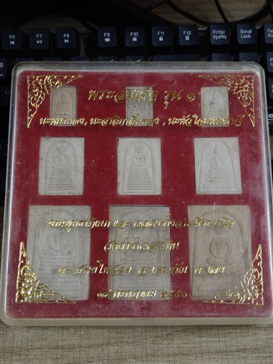 A52.พระชุดสมเด็จรุ่น ๑ นะหนเาทอง นะสาริกาลิ้นทอง นะหัวใจมหาเศรษฐี งานพุทธาภิเษก เเละ ฉลองช้างสามเศียรงานิล วัดถ้ำข้าวสารหิน จ.เลย กล่องเดิม |