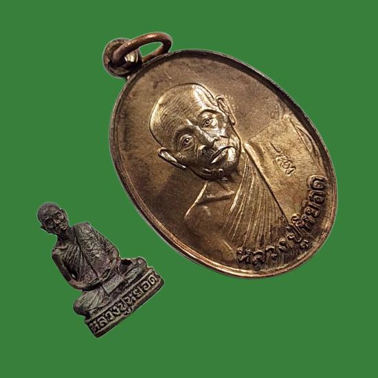หลวงพ่อหยอด วัดแก้วเจริญ เหรียญนวโลหะ สภาพสวยตามรูป 2 องค์ |