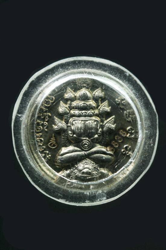 ปิดตาพังพระกาฬพิมพ์เล็ก รุ่นสมบัติจักรพรรดิ์ พ.ศ.2549 ไม่แน่ใจเป็นเนื้ออัลปาก้าหรือเงิน ตอกเลข3838 เลี่ยมพลาสติกแกะจากกรอบทอง |