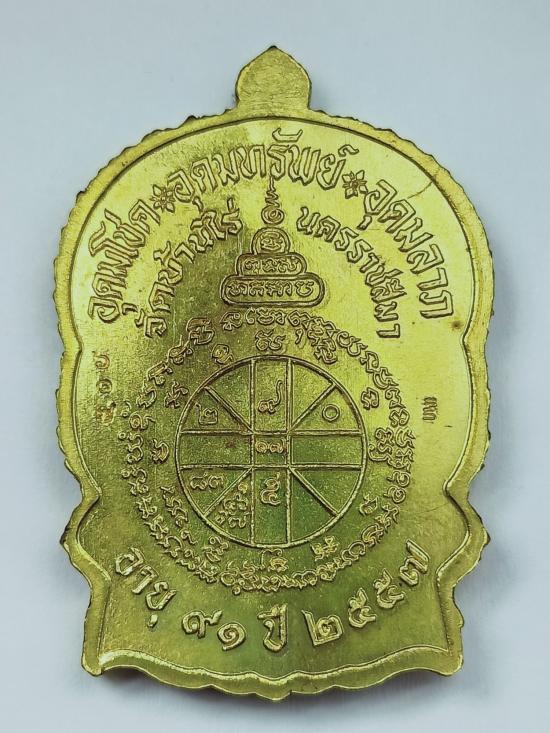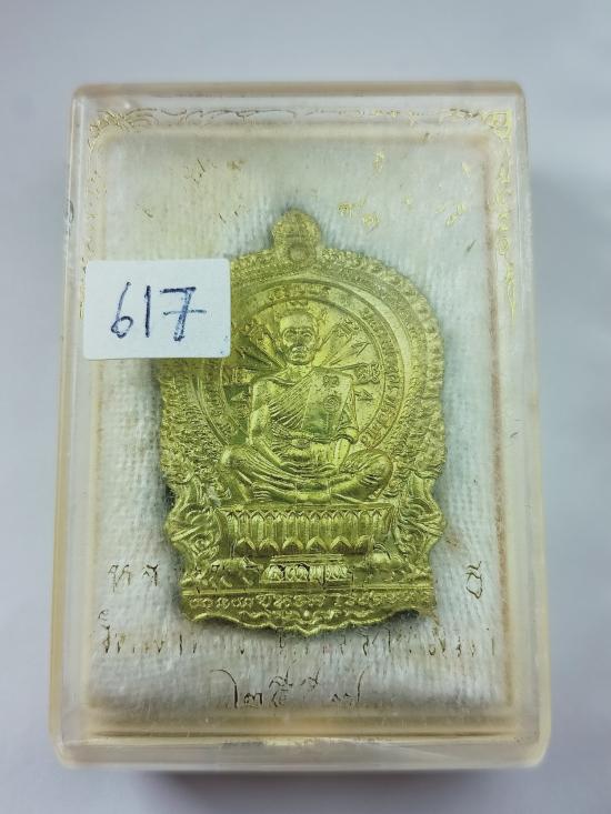 เหรียญนั่งพาน ชนะมาร91 หลวงพ่อคูณ วัดบ้านไร่ เนื้อทองฝาบาตร(ตอกแจก หลังยันต์) เบอร์ 617 พร้อมกล่องครับ